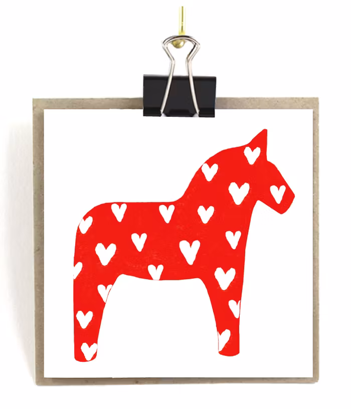 Stort kort med kuvert - Röd dalahäst