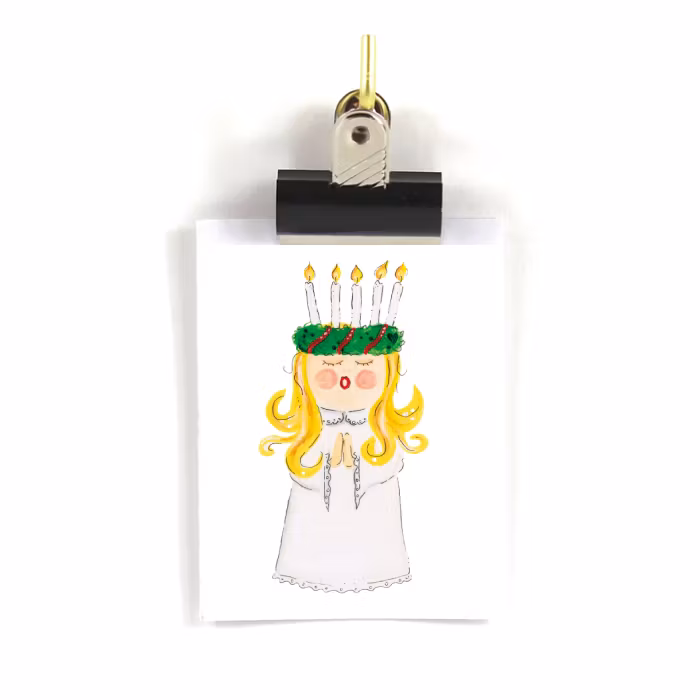 Våra små dubbelvikta julkort mäter 80x60mm och är designat av konstnären Anneli Asplund, inspirerad av Sverige och tryckt stolt i Sverige på miljövänligt papper.